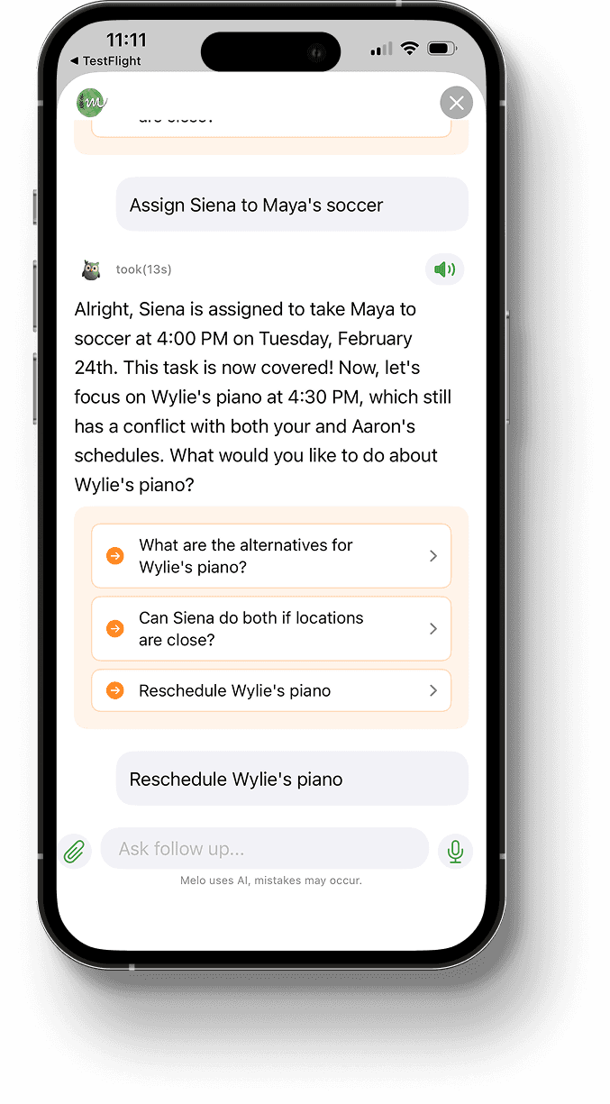 From permission slips to party RSVPs, Melo tracks the invisible details and shares updates with your partner, caregiver, or whoever needs to know. You’re no longer the human inbox, calendar, and loudspeaker.